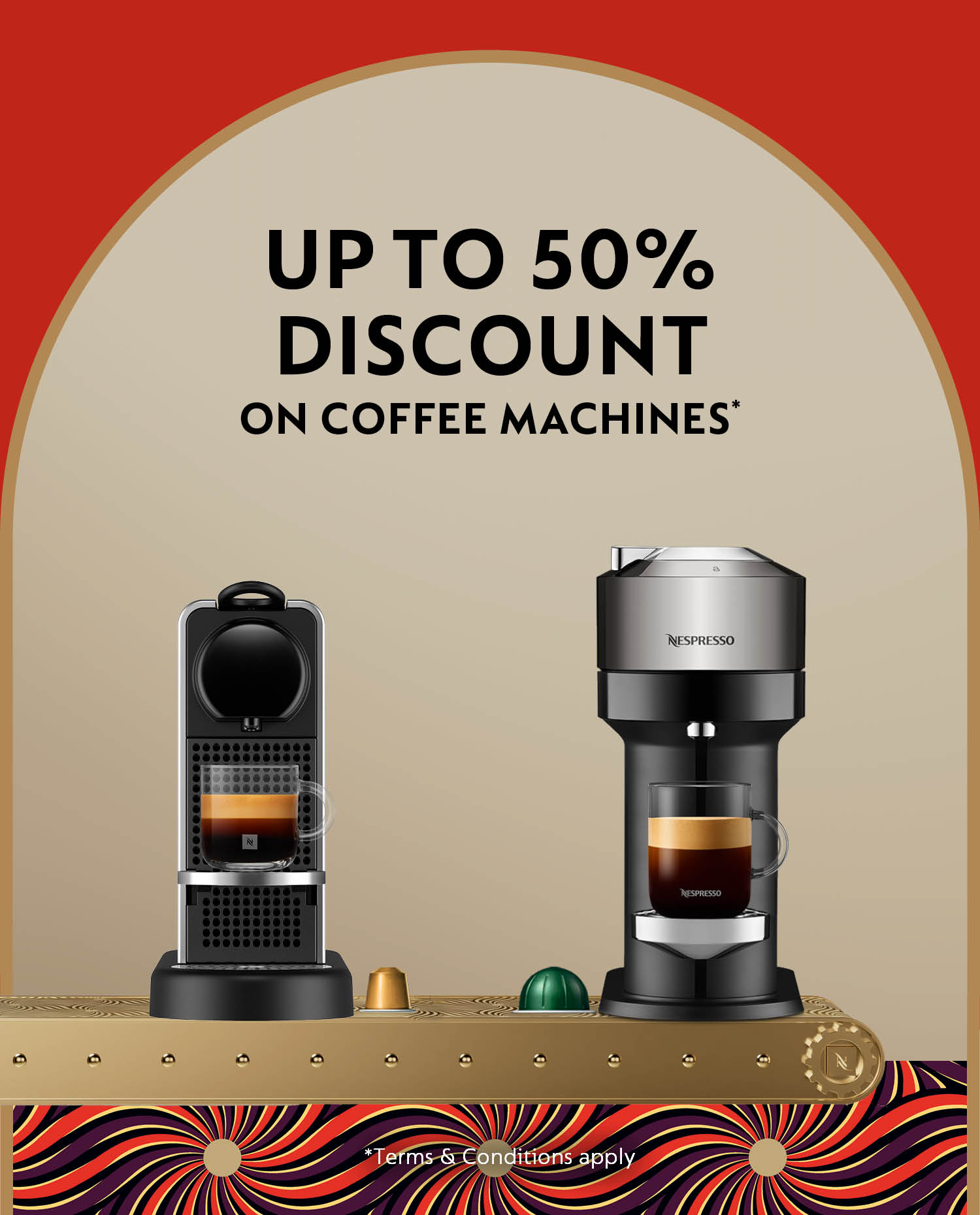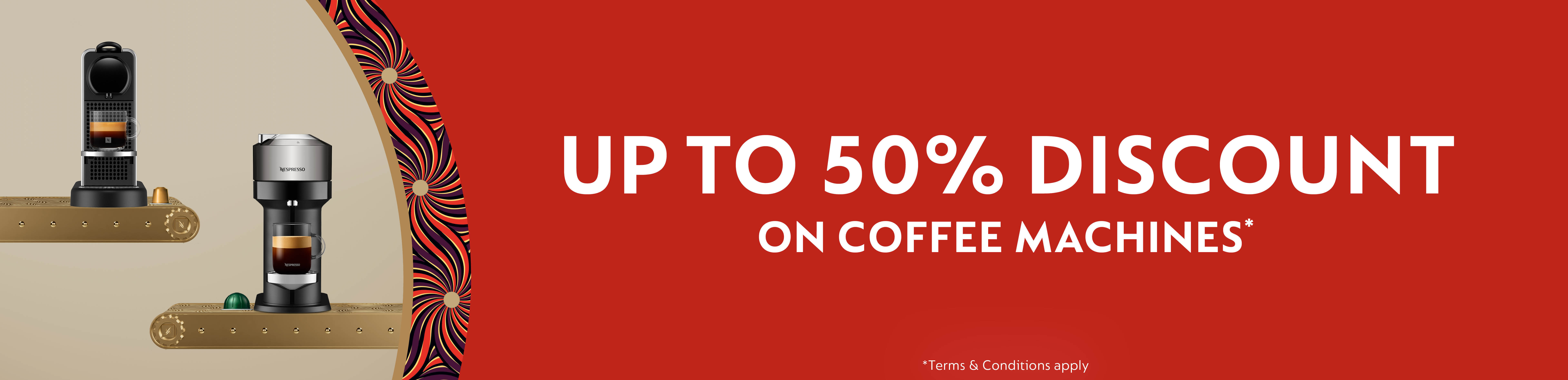 Order the Citiz&Milk or Citiz Platinum coffee machine on sale with a 50% or 30% discount when you purchase 350/300 or 150 capsules.