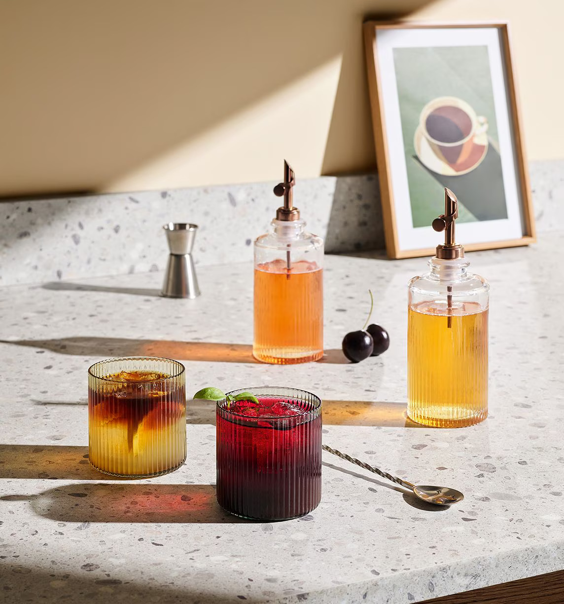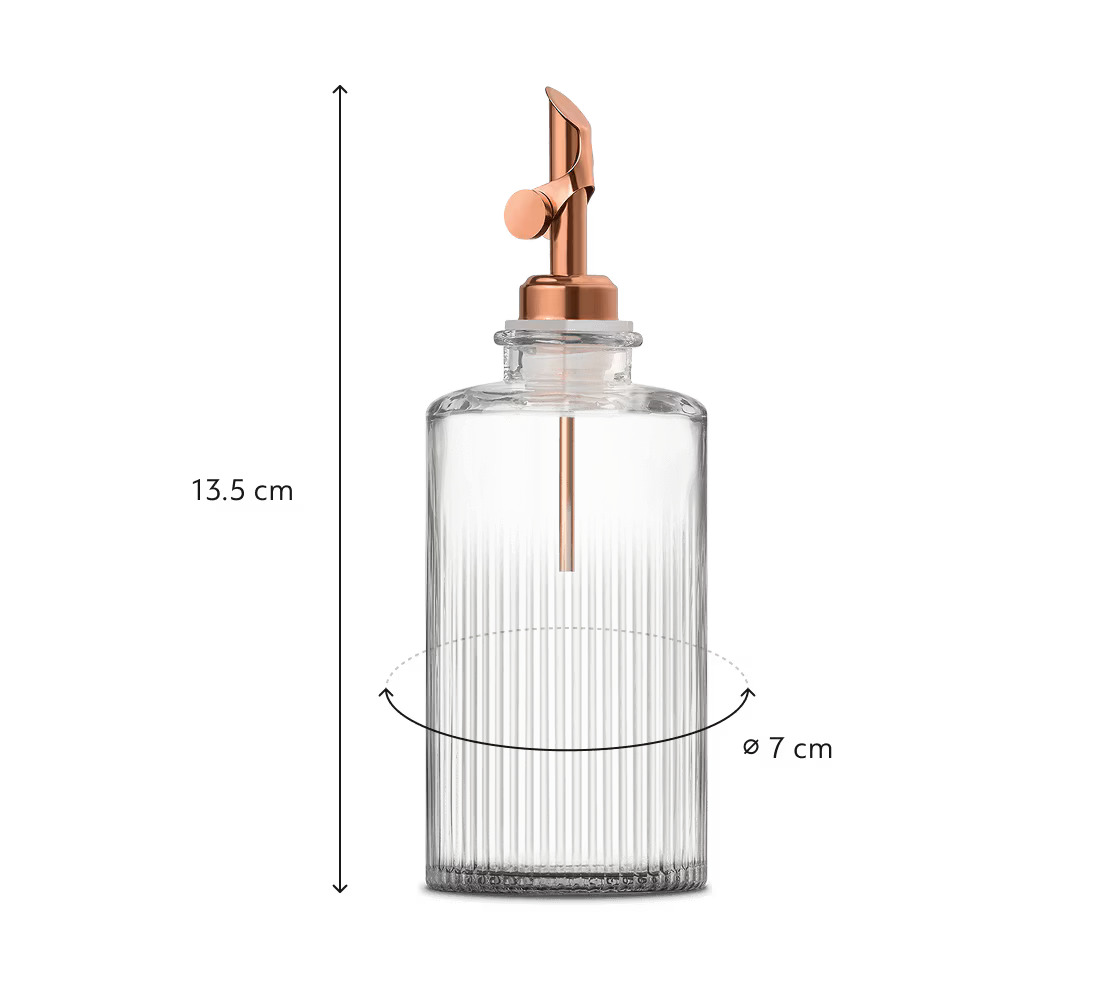 Neizostavan dodatak svakoj kolekciji ljubitelja recepata, ovaj dozer za sirup spaja bezvremenski dizajn sa modernom estetikom. Rebrasta staklena bočica daje sofisticiran izgled vašem kutku za kafu, dok metalni dozer u boji bakra savršeno kombinuje funkcionalnost i stil. Nezaobilazan klasik za svakog baristu.