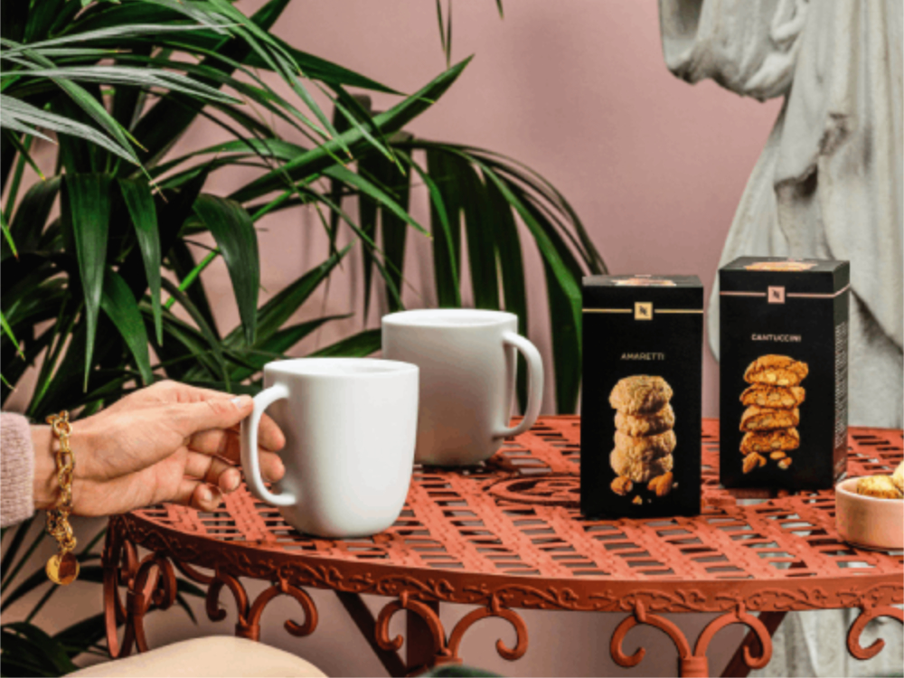 Bijele porcelanske šalice, koje je dizajnirala milanska dizajnerica Federica Biasi, donose blagi zaokret tradicionalnom talijanskom umijeću barista. Kutni rub otkriva sve arome vaše kave. S mat površinom za ugodan dodir, elegancija se u profinjenom dizajnu spaja s kompaktnim porcelanom i linearnim izgledom. U kontrastu je s prozirnim oker crvenim tanjurićem.