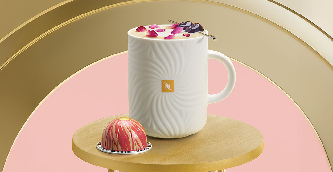 - U festive šolju sipati 10 ml meda i napraviti 80ml VL Sweet Almond & Hibiscus kafe (Recipe mode-dvaput pritisnite dugme za kafu, boja će se promeniti u tirkiznu i ekstrakcija će početi).