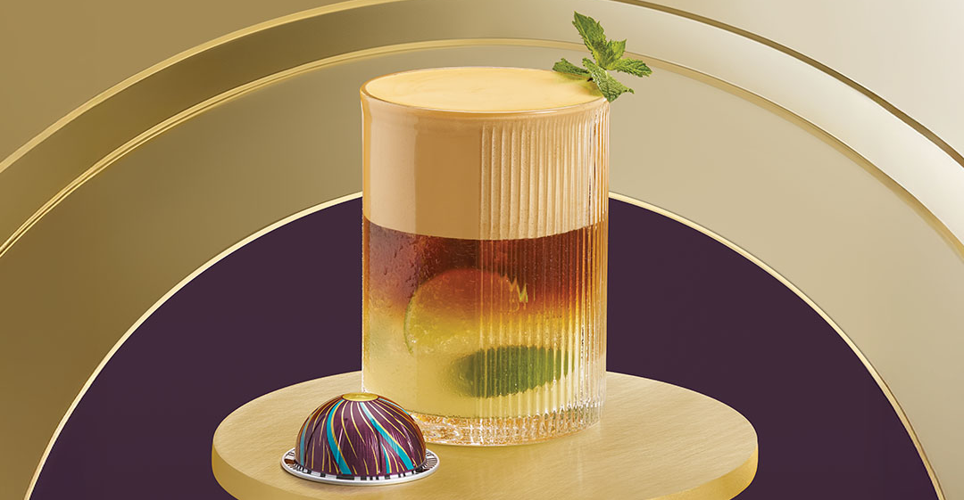 Osvežite se živopisnom ledenom kafom sa izgnječenom limetom, medom, pivom od đumbira i prazničnom Espresso kafom, sa svežom nanom kao ukras.