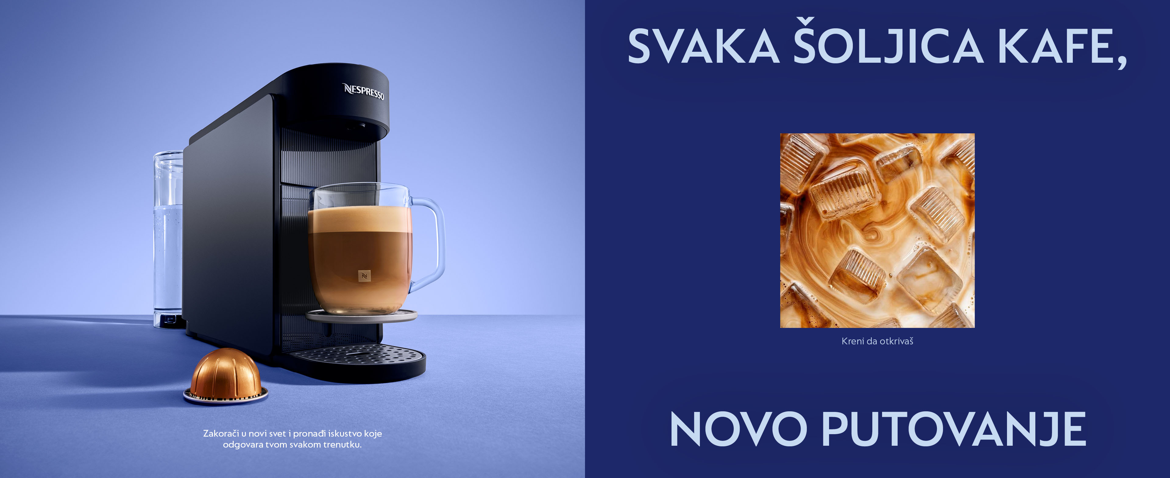 Više od 40 premium i aromatizovanih kafa u 7 veličina šolja, tople, sa ledom ili u receptima, uz Vertuo-odobrene brendove.